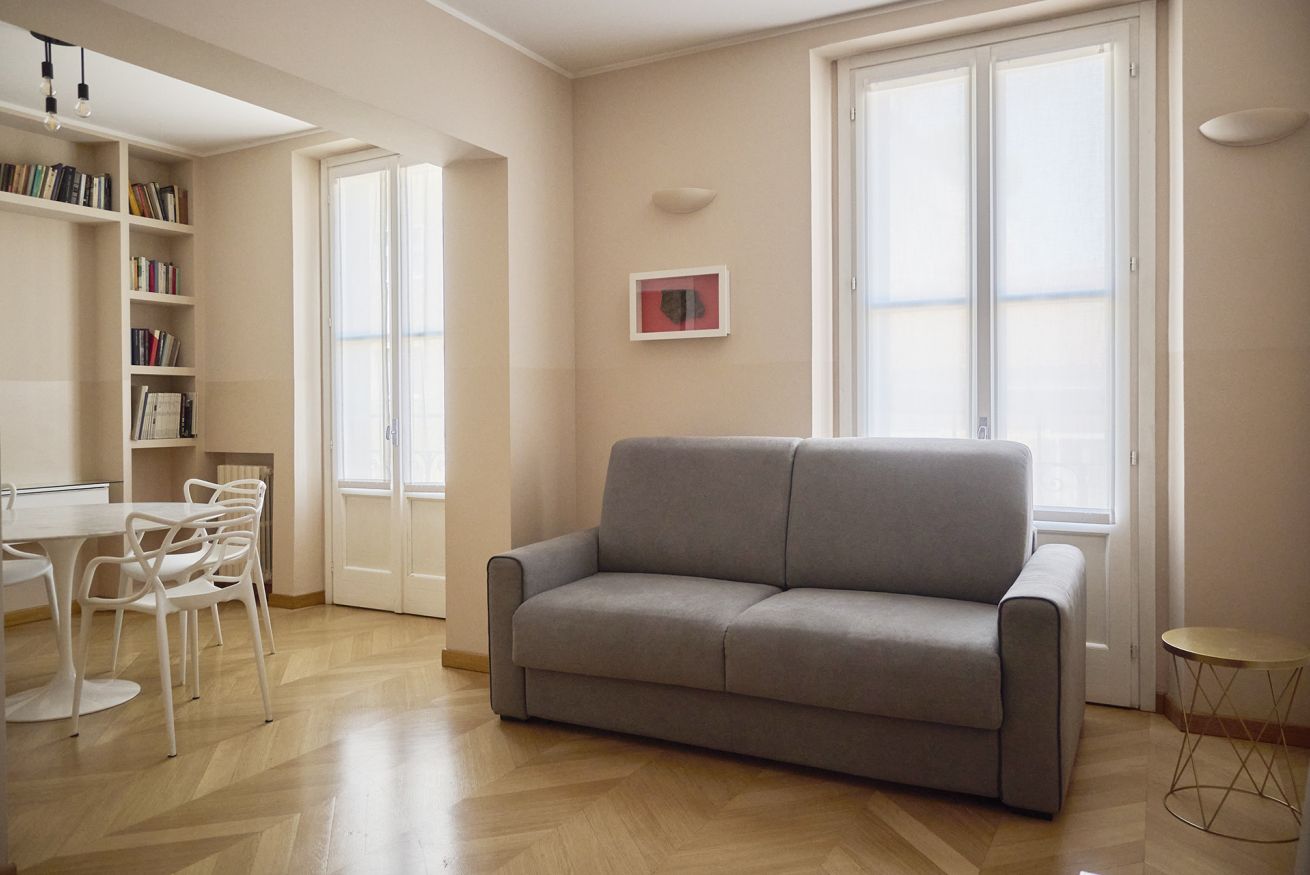 Discover the elegance and comfort of this luxury two-bedroom apartment located in the historic centre of Milan. This modern, tastefully furnished flat features two double bedrooms, two bathrooms - one with a bathtub and one with a shower respectively - a spacious living room with sofa bed, a dining room and a fully equipped kitchen with a fridge, Nespresso coffee machine and microwave. With high-speed Wi-Fi and air conditioning, it offers everything you need for a stay of up to six people in the heart of the city.