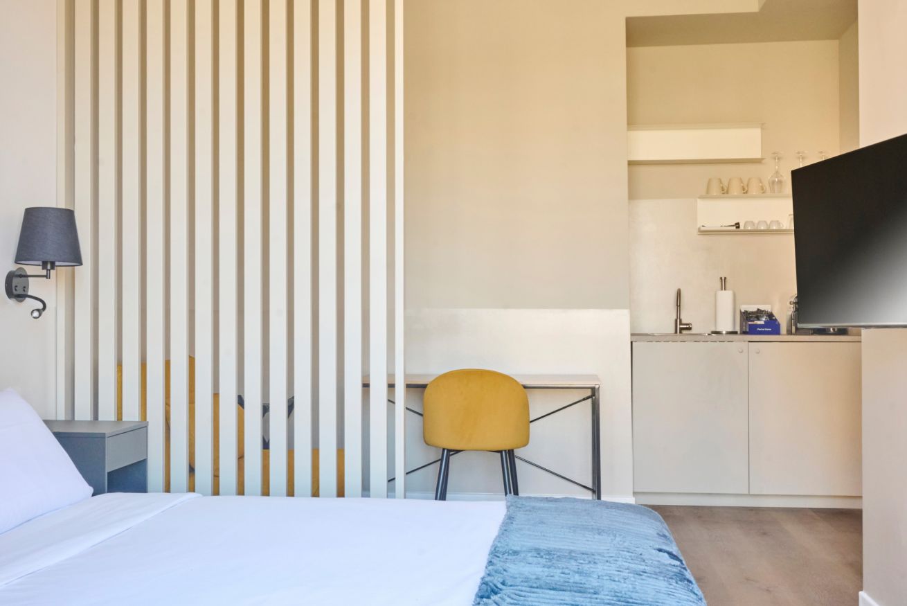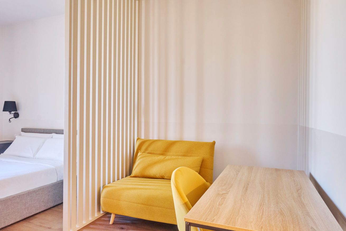 Una camera tripla spaziosa e versatile, perfetta per amici, piccoli gruppi o famiglie che desiderano soggiornare nel quartiere più vivace di Milano. La stanza offre un comodo letto matrimoniale e una chaise longue che si trasforma in un letto singolo, garantendo flessibilità e comfort. L’arredamento moderno crea un ambiente piacevole e funzionale, mentre l’angolo tè e caffè con bollitore e macchina del caffè permette di godersi una pausa in totale relax. La camera dispone anche di un balcone privato ideale per rilassarsi o affacciarsi sui caratteristici scorci dei Navigli. Il bagno è completamente accessoriato, dotato di doccia, asciugamani e prodotti di cortesia, per un soggiorno pratico e confortevole. La posizione, nel cuore dei Navigli, consente di raggiungere facilmente la metropolitana e di scoprire ristoranti locali, bar e gallerie d’arte, vivendo Milano nella sua atmosfera più autentica.